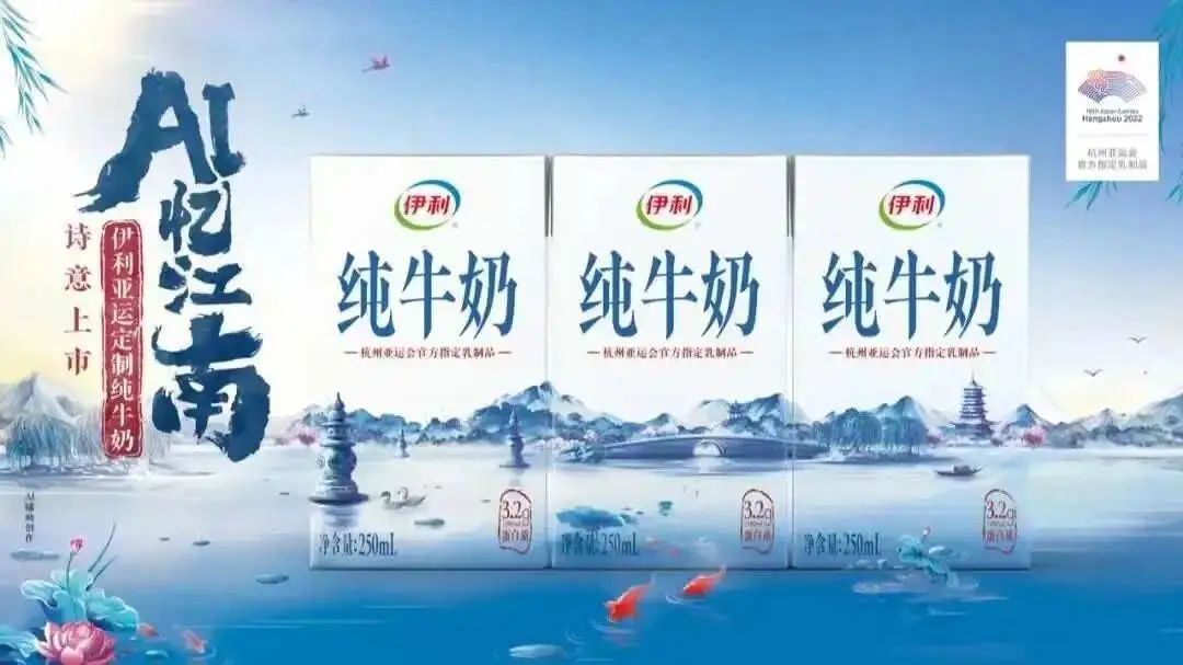 6月13日,在“杭州亚运会倒计时100天”之际,伊利推出「亚运定制纯牛奶」AI忆江南限定系列包装。产品以AIGC技术辅助包装设计,通过“科技感、自然生机、东方美学、未来感、极简和童真”6个关键词,让传统古典美与前沿科技充分碰撞,给消费者带来全新视觉体验。