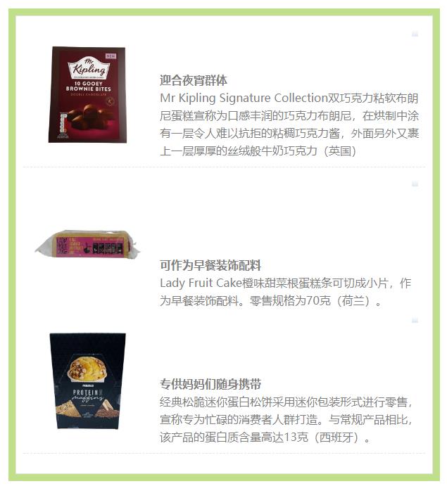 品牌可(ke)以利(li)用小规格蛋糕帮助(zhu)消(xiao)费(fei)者控制卡路里(li)摄入量,获得(de)适度纵享(xiang),同时也可(ke)以鼓励新的消(xiao)费(fei)场景——例如下午茶或夜(ye)宵点心。