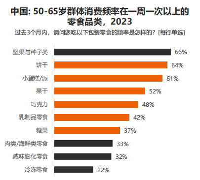 糖果巧克力成为老年消费者有兴趣购买的产品种类,位列第二(39%)。