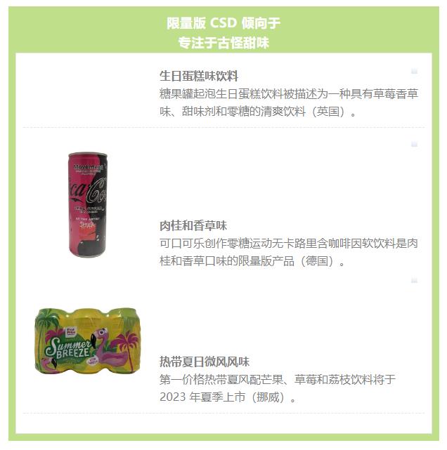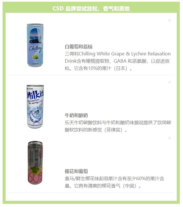 香精仍然是CSD市场的核心创新战场,继续使用新的香精和香精组合作为建立新奇和创新的一种配方设计方式。