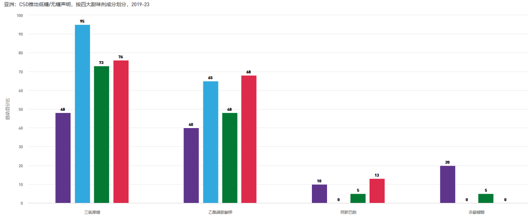亚洲的CSD公司一直在积极投资零糖配方,无糖和低热量或低热量或减少卡路里的声明在该地区的推出中继续增加。与此同时,中国消费者对气泡饮料中使用的糖替代品,并了解了关键的甜味剂赤藓糖醇。